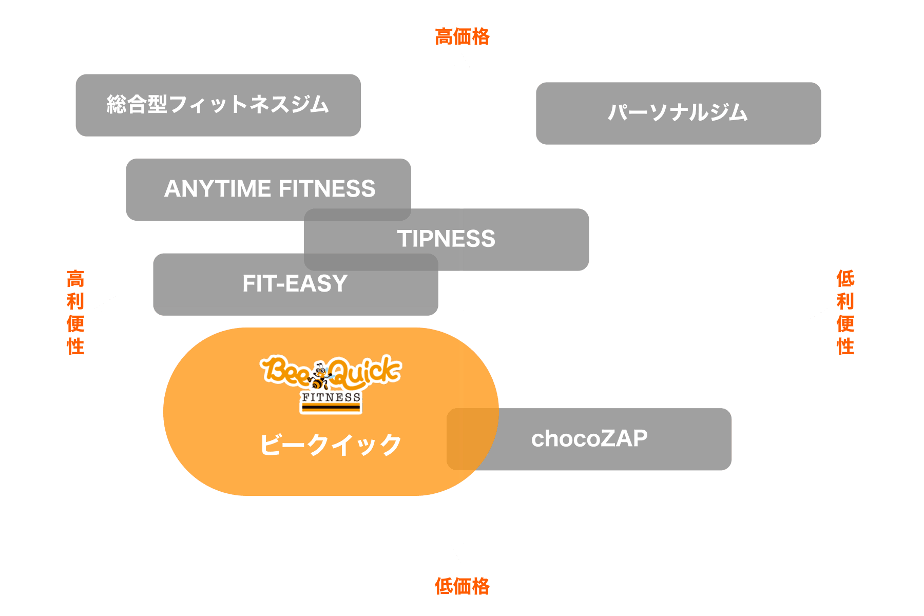 多くの競合が「高価格・高利便性」のレッドオーシャンに集中する中、BeeQuickは「低価格」でありながら「高利便性」を維持する独自のポジションを確立。大手24時間ジムの品質と、格安ジムの価格競争力を兼ね備えた、市場空白地帯(ブルーオーシャン)を攻められるビジネスモデルです。