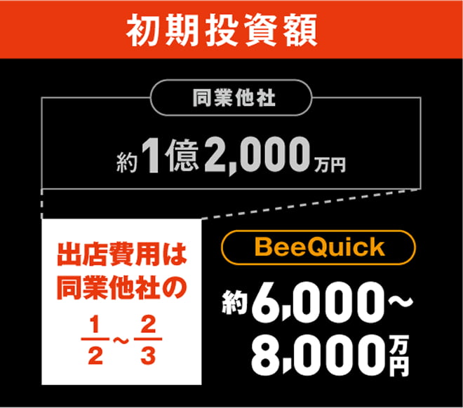 フランチャイズジム開業の初期費用が半額に。BeeQuickはマシン自社製造により、出店コストを大幅削減(約6,000万円〜)。低投資・早期回収を目指すフランチャイズオーナー様をサポートします。