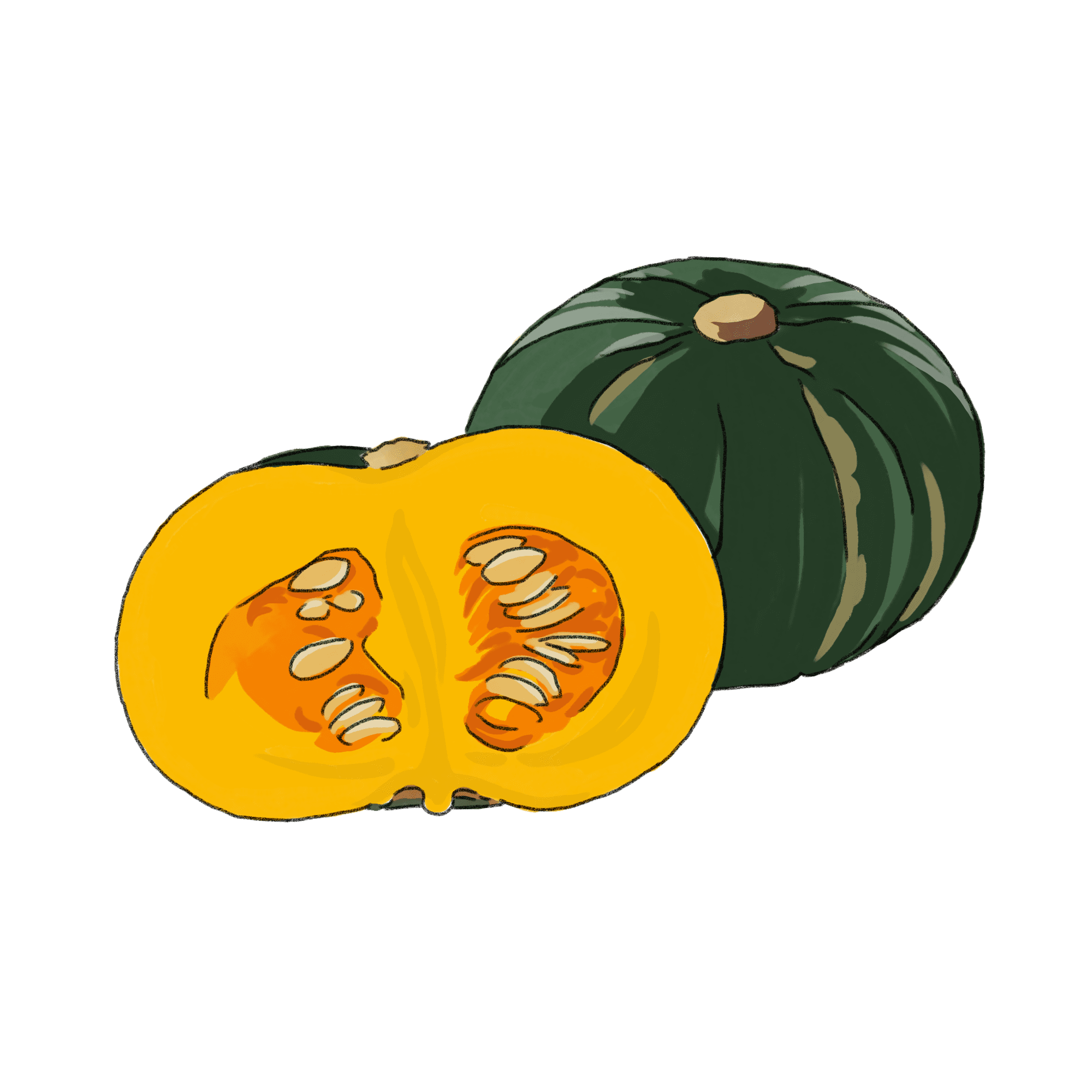 かぼちゃは、β-カロテン、ビタミンB、C、Eなどのビタミン類を含んでおり、緑黄色野菜の代表格です。
