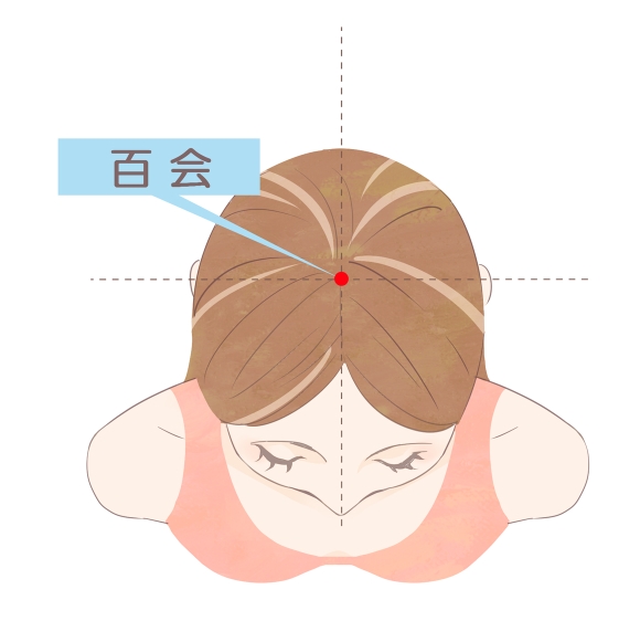 両耳の一番高い位置から伸ばしたラインが交わる頭のてっぺん。
