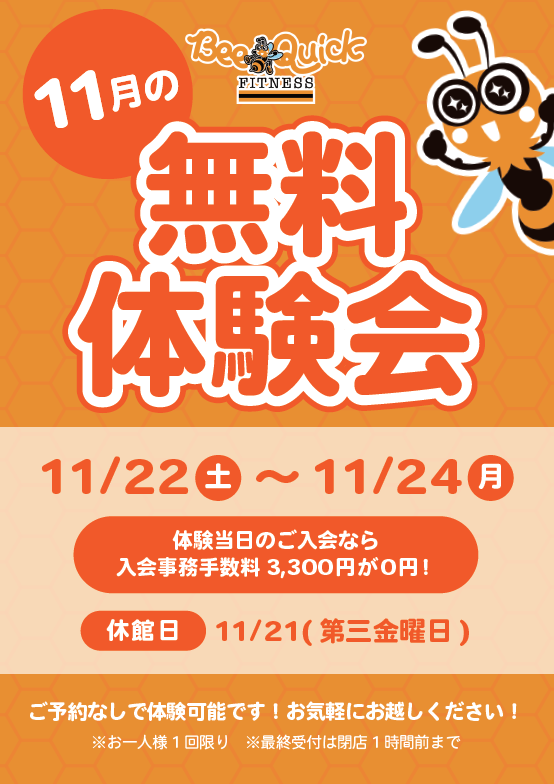今月はなんと体験後そのままご入会で、入会金3,300円が0円に!