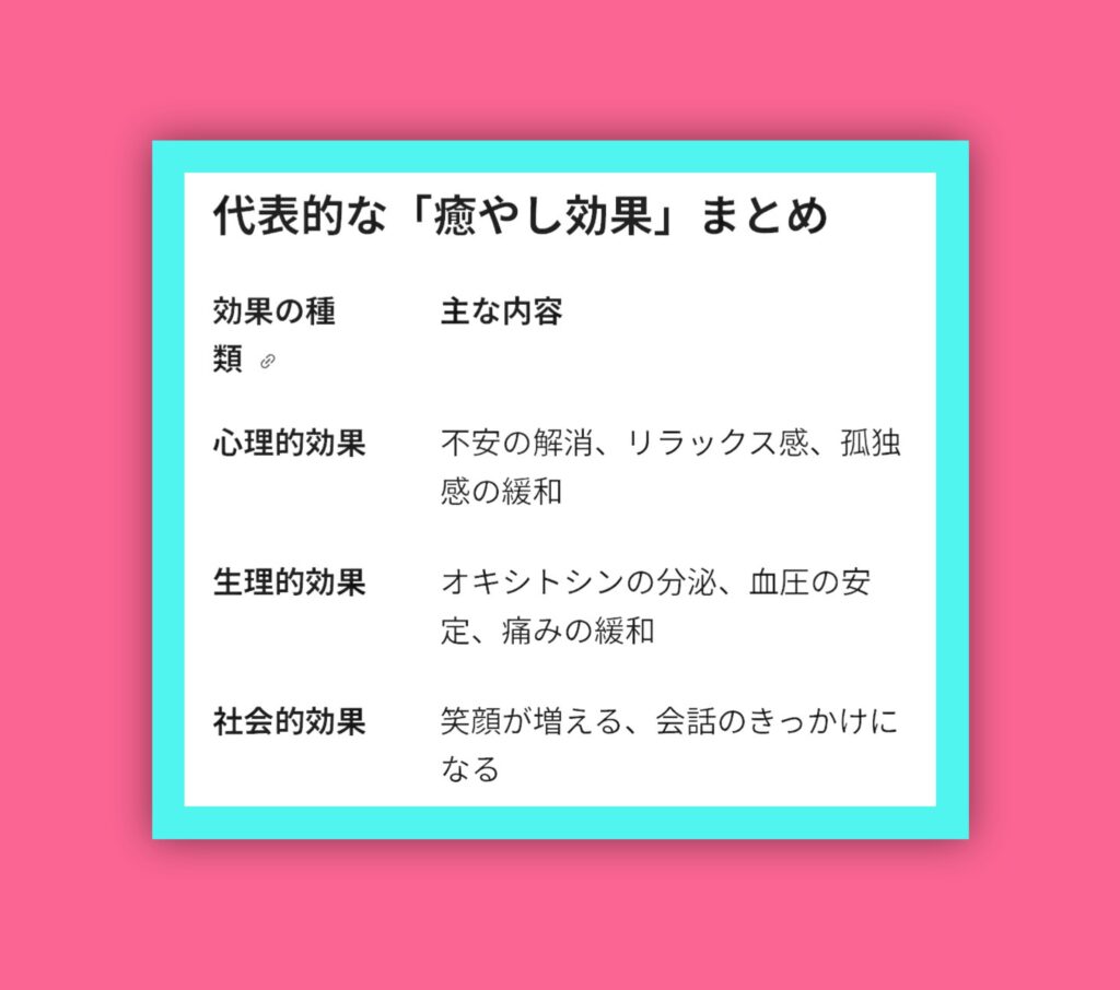 ◉動物と触れ合う事で得られる代表的な効果をご紹介します‼