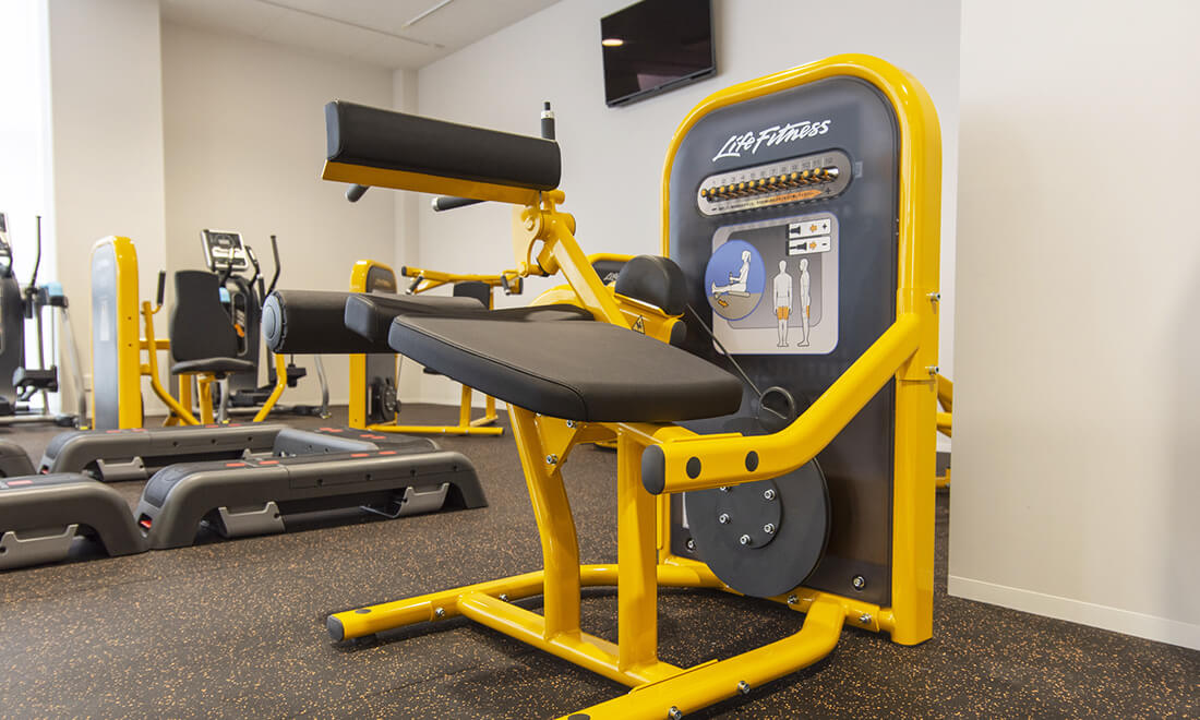 太ももの前側を鍛えるマシン。脚をしっかり伸ばし切りましょう。