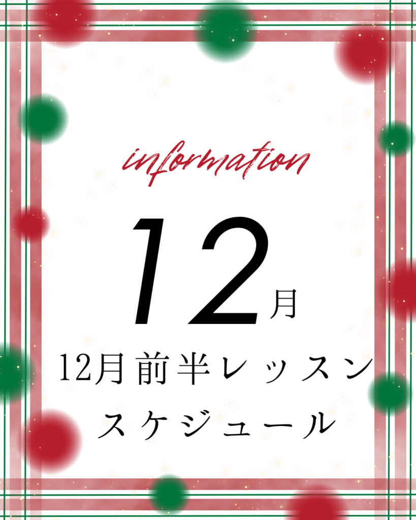 12月前半のレッスンスケジュールが確定したのでお知らせ致します!